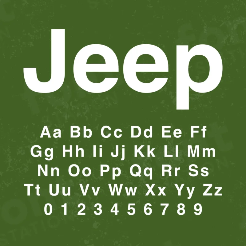 Grab your computer, tablet or other device and start creating right now with our Jeep font letters! Our Deep Mud typography is inspired from Jeep 4×4 adventure car font, making it ideal for various digital creations (logo, word…), sublimation, cake toppers, stickers, event decorations, and more.